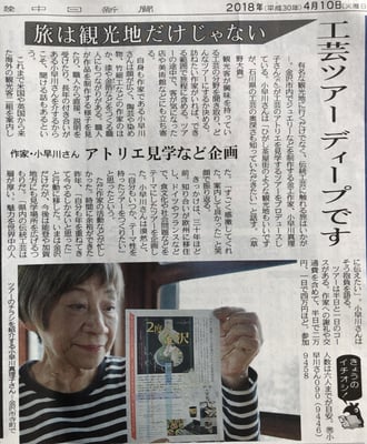 4月10日の中日新聞に、金沢工芸ツアー企画「小早川眞理子と工芸作家のアトリエを訪ねる旅」が紹介